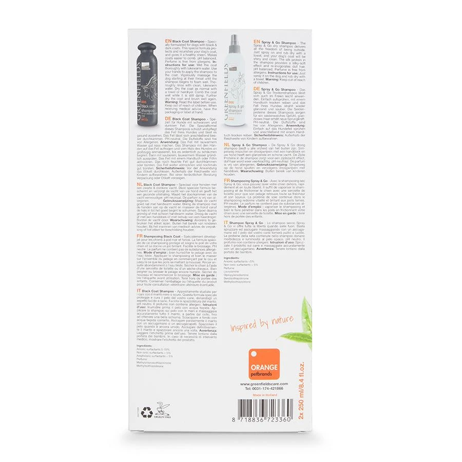 De luxe Black Coat Shampoo van Greenfields is speciaal gemaakt voor een grondige reiniging van een zwarte of donkere vacht. De shampoo is hoog geconcentreerd waardoor zuinig in gebruik. De ingrediënten zorgen ervoor dat de vacht zijn natuurlijke kleur terug krijgt. Jouw hond verdient het om er weer prachtig uit te zien!