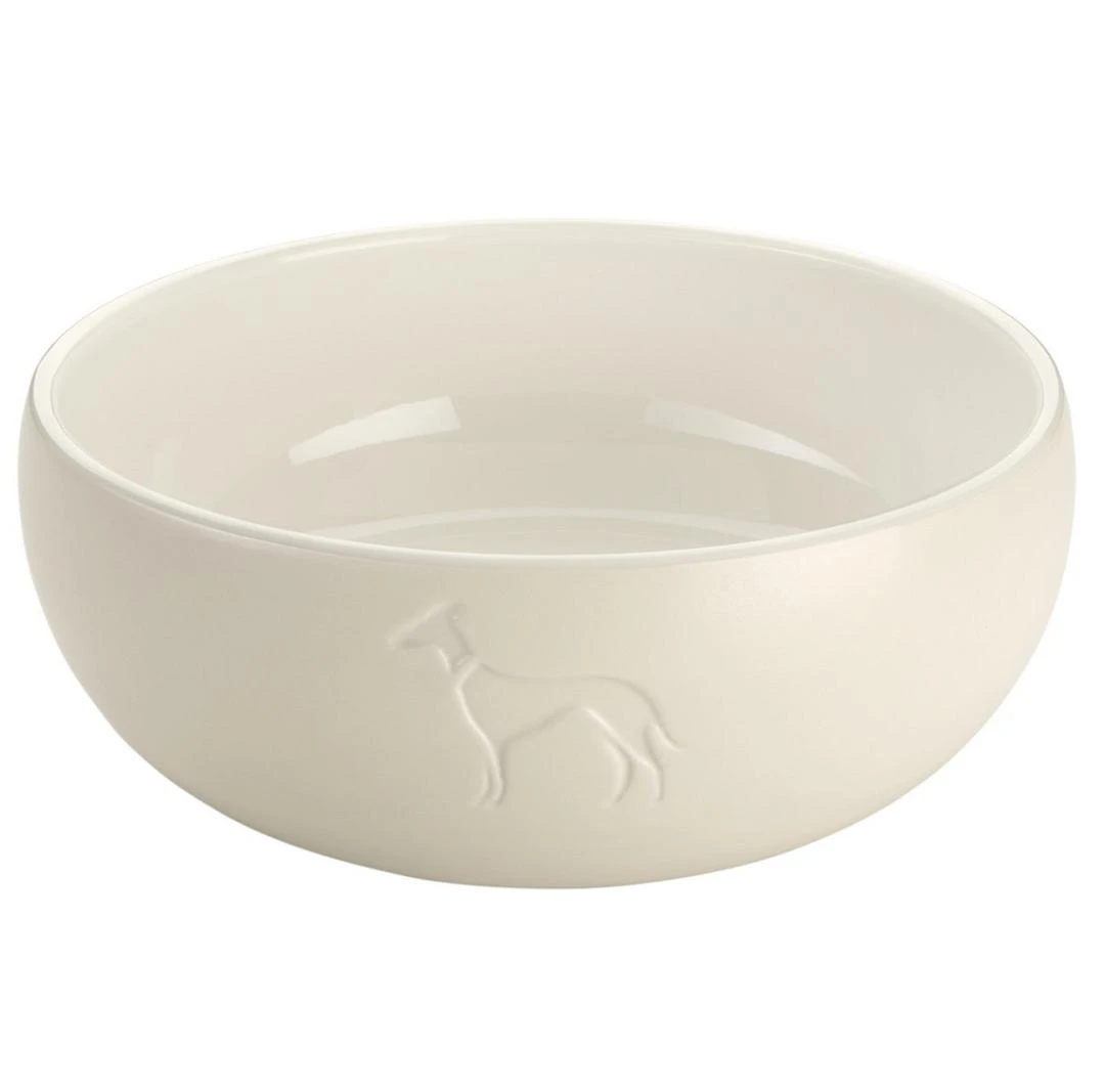 Hunter Voerbak Lund is een moderne, keramische voerbak met een gebosseleerd hondensilhouet op de voorkant. Dankzij de omringende siliconen rand aan de onderkant en het relatief hoge gewicht is de voerbak bijzonder veilig en wordt hij ook gemakkelijk geaccepteerd door gevoelige honden.