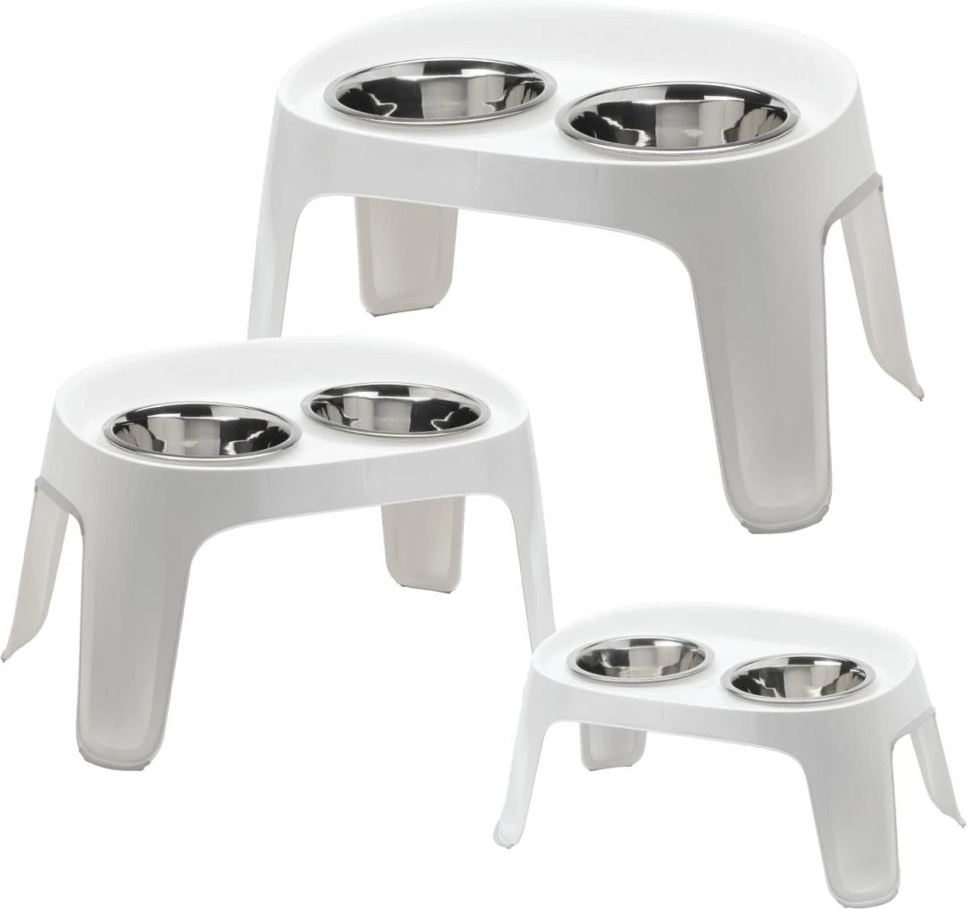De Moderna dubbele voederstandaard Skybar helpt jouw hond comfortabel te eten en drinken. Voorzien van antislip onderaan de poten tegen het wegglijden, aan de zijkanten voor goede houvast tijdens het verplaatsten en rondom de RVS eetbakken, zodat deze geen geluid produceren tijdens het eten of drinken.