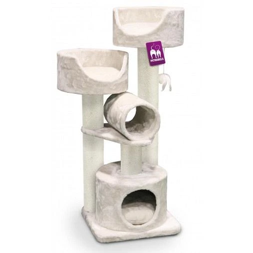 Twee luxe divans met uitneembaar kussen bovenin zorgen er voor dat je lieveling op de uitkijk kan gaan zitten. Een slaapruimte voor een middagdutje en een speelrol maakt het al snel een waar feest voor je kat.