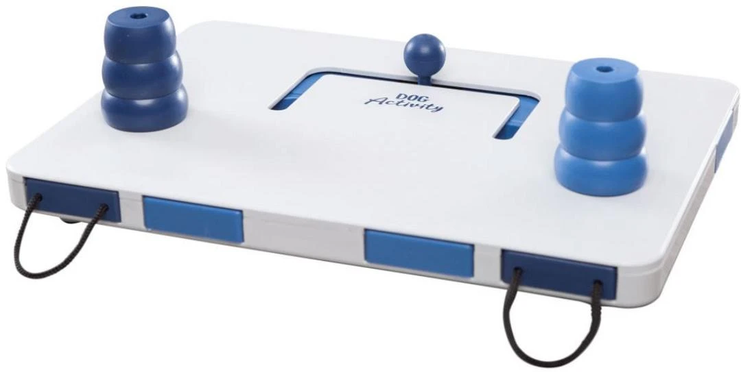 bordspel voor gevorderden: door de lades met behulp van de lussen te openen dan wel de stempel te verschuiven, komt de hond bij zijn beloning bordspel met 2 kegels en diverse kleine kommetjes en lades door de kegel als stopper te gebruiken, kan de moeilijkheidsgraad worden opgeschroefd kunststof slipvast door rubberen ring incl. handleiding met tips en handigheidjes voor een optimale training