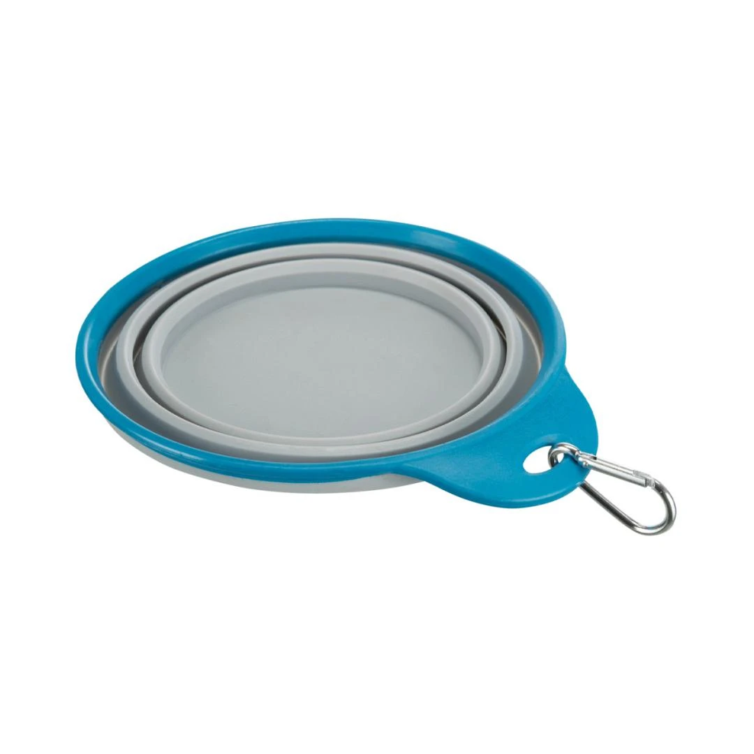 Handige siliconen voerbak voor onderweg. Opvouwbaar, maar zeer vormvast door stevige kunststof rand. Met karabijnhaak om bijv. aan de broekriem vast te maken.Gemaakt van thermoplastisch rubber (TPR).