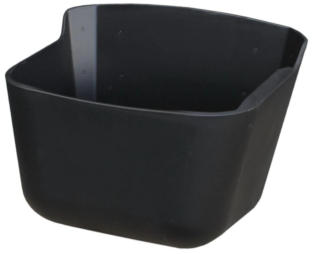 Duurzame zwarte kunststof voerbak (Polypropyleen).